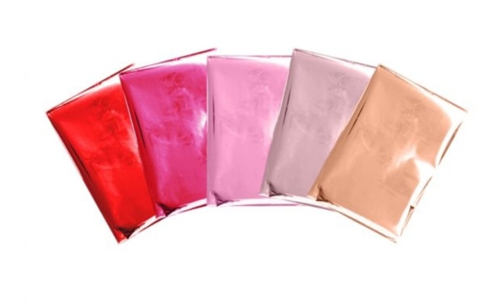 •  30 listov metalickej fólie v 5 farebných odtieňoch v rozmere 10,1 x 15,2 cm