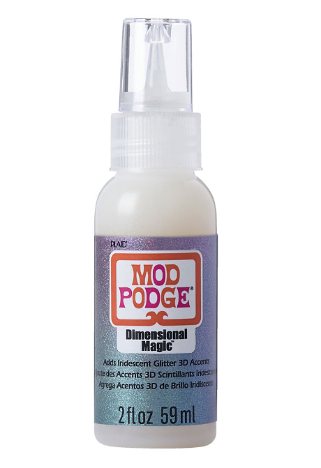 Mod Podge Dimensional Magic, Iridescent Glitter allows you to add dimension to your arts and crafts. This epoxy-like formula creates a faux glass-like effect that dries with a glittery iridescent finish and a 3D domed shape. Use Mod Podge Dimensional Magic to create jewelry, paper crafting, and more. The bottle features an easy-to-use writer tip - perfect for doing intricate detail work on small decoupage projects. Allow your project to dry for 24 hours for best results. This stay-put formula won't sag or run and can be used on a variety of surfaces including wood, canvas, terra cotta, and so much more. Make Mod Podge Dimensional Magic a part of your art supplies for that added touch of character and texture.